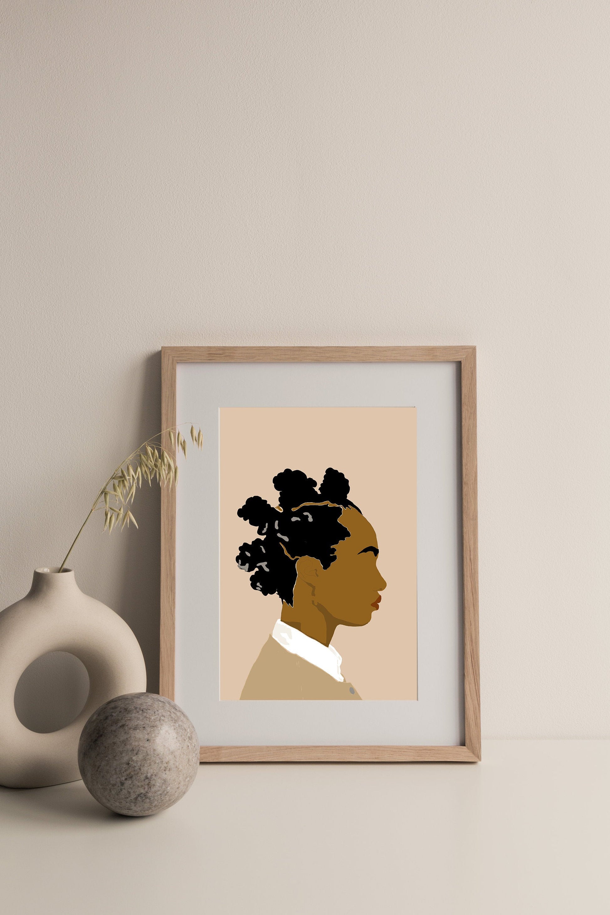Black Bantu Knots Art | Instant Download, Black Girl Art, Afro American Art, Curly Hair Art, Black Woman Art, Mid Century Modern Art