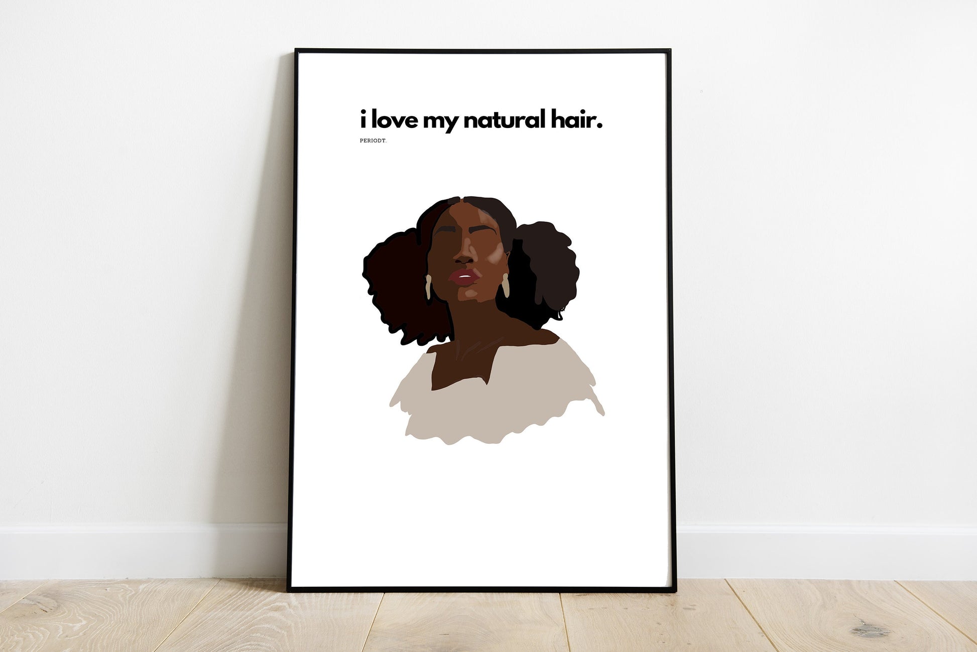 I Love My Natural Afro Puffs | Instant Download, Black Girl Boho Art, Afro-American Art, Natural Hair Print, Black Woman, Black Girl Afro